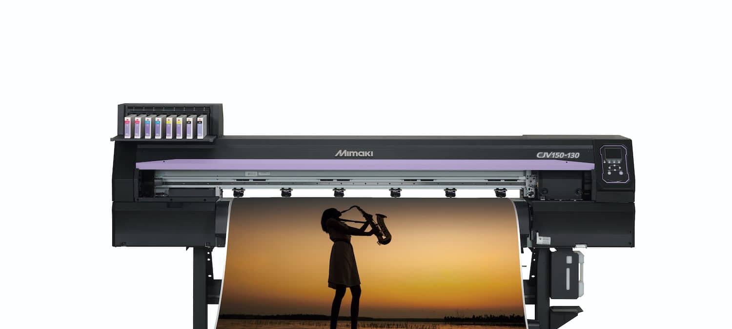 CJV150 Series integrated printer/cutter from Mimaki provides high performance, creativity and versatility with vibrant ink types, including new Silver, Orange and Light Black, in a cost effective package for signmakers, display graphics professionals and printshops
